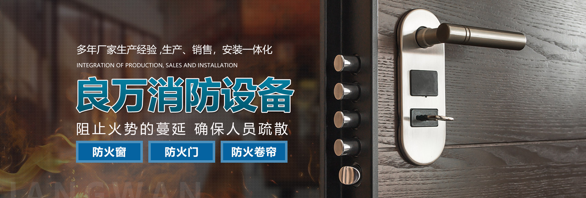 合肥良萬消防設備有限公司位于合肥市包河工業(yè)園,生產(chǎn)銷售安裝:防火門、防火卷簾門、防火窗等消防安全產(chǎn)品。公司具有研發(fā)、設計、生產(chǎn)、銷售、及安裝服務的綜合配套能力。合肥良萬消防設備有限公司技術力量強,設備齊全,產(chǎn)品不斷創(chuàng)新,以信譽立業(yè),客戶滿意是我們永無止境的追求。我們在保證產(chǎn)品質量的同時,也十分注重售后服務,保證消防安全產(chǎn)品的正常運行。公司始終堅持誠信為本的企業(yè)宗旨,真誠希望與社會各界新老客戶精誠合作,良萬愿與您攜手共創(chuàng)輝煌!
